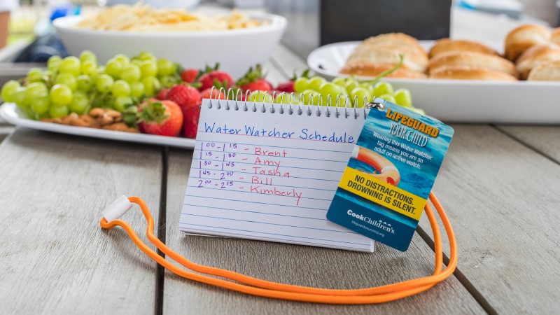 - A Water Watcher tag can be used to designate responsible adults to watch the water when you have a party at the pool, lake or beach. At social gatherings, 10-15 minute shifts are recommended. During that time, Water Watchers should not be distracted by conversations, cell phones, reading, etc.